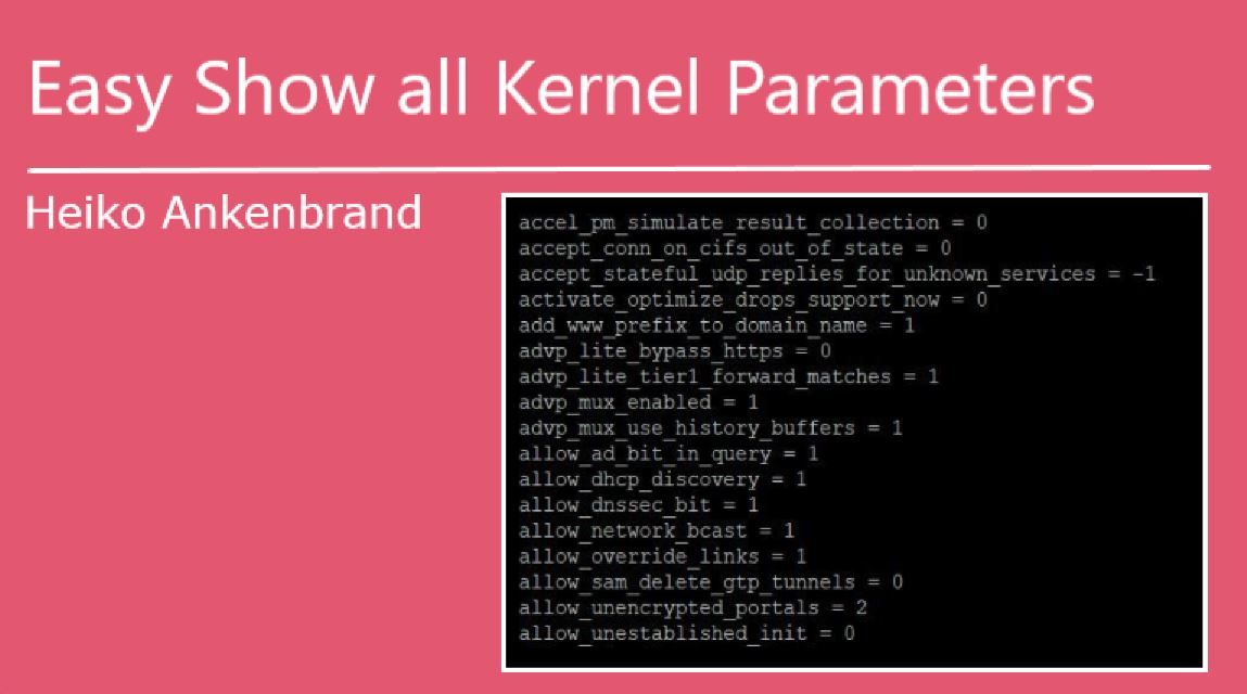 Querying a specific kernel parameter. 2) dynamic where no need to reebot. To see all kernel parameters, execute: